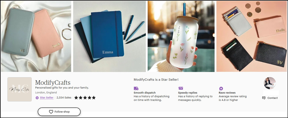 At Modify Craft Ltd, we specialize in creating personalized bags and notebooks, perfect for any occasion. With a wide range of high-quality products ready to be customized with your name, initials, or special message, we offer something truly unique for every customer. Our Etsy store is filled with glowing reviews from satisfied customers who appreciate our attention to detail and commitment to excellence. Whether you're looking for a thoughtful gift for a loved one or custom items for your business, Modify Craft Ltd ensures each product is crafted to perfection, making it a memorable and meaningful gift.